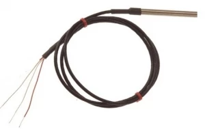 PT100 RTD Temperature 3 wire sensing probe, 6mm diameter / 50mm long. This PT100 probe comes with a 2 metres connection lead and is compatible with any digital controllers that use a PT100 sensor input.